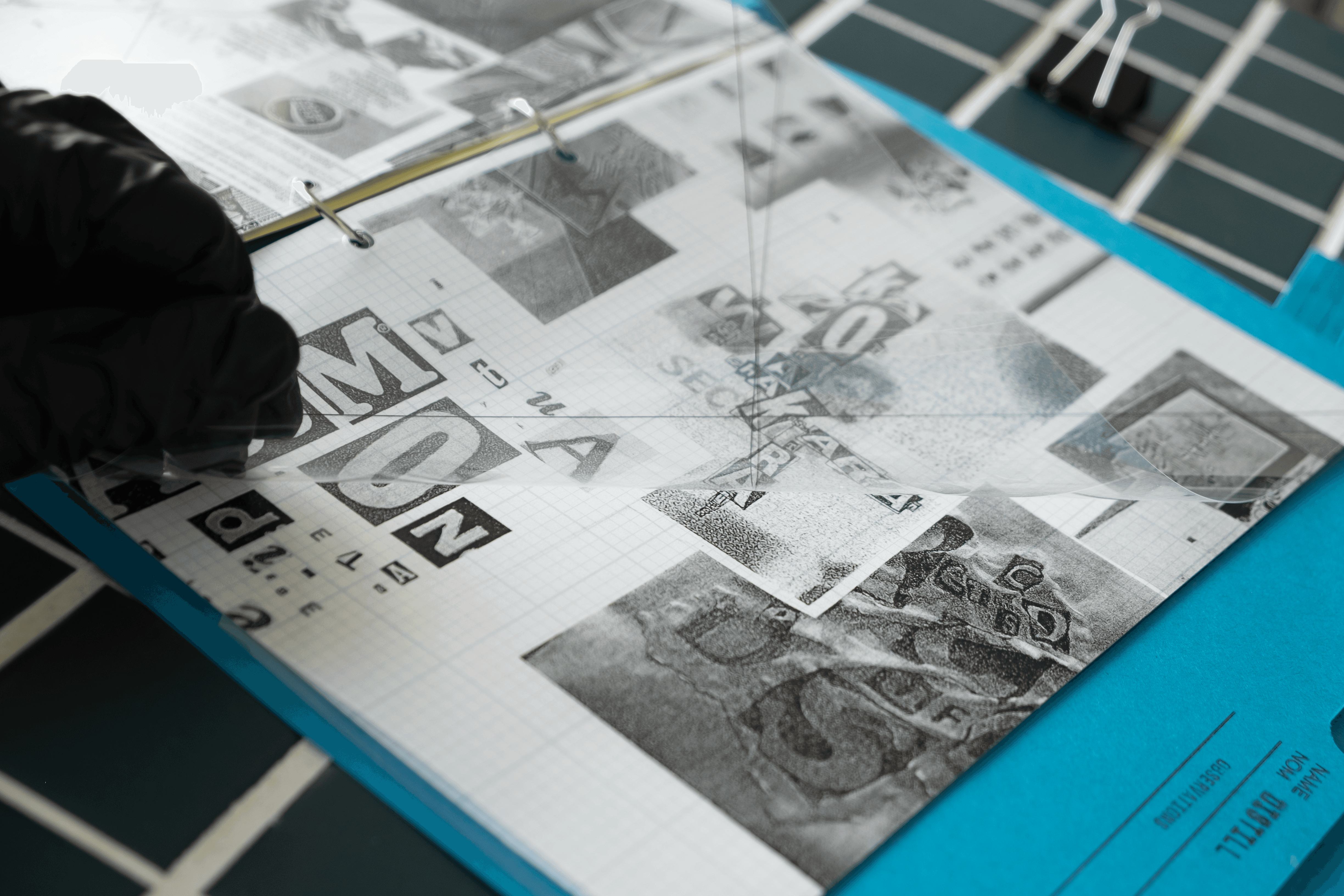 Timeline of visual research and exploration collected over the course of several projects. This was photographed and assembled into the pages of the first volume DISTILL.