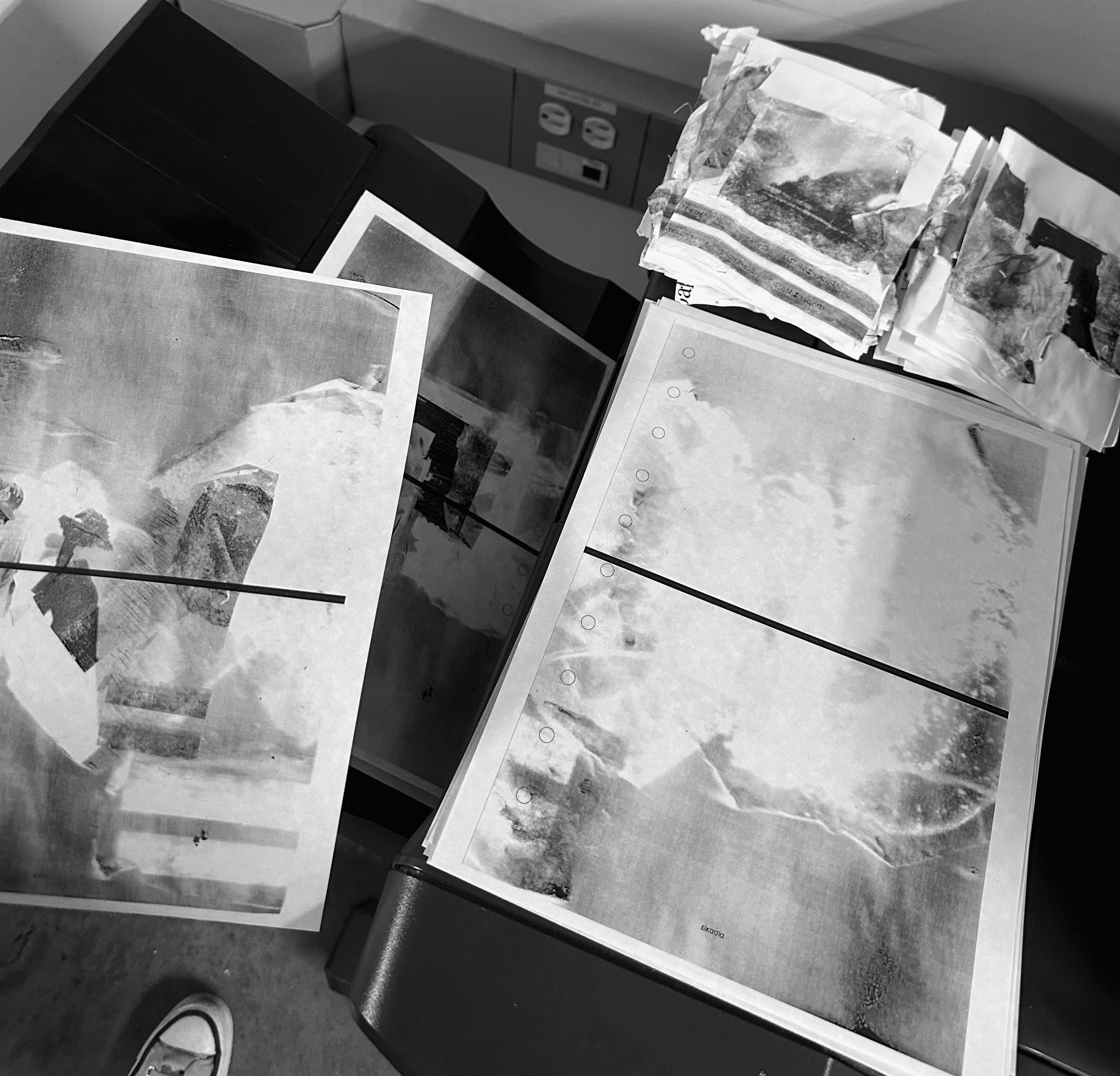 Physical components of collage are manually photocopied again onto the original inverted scan.