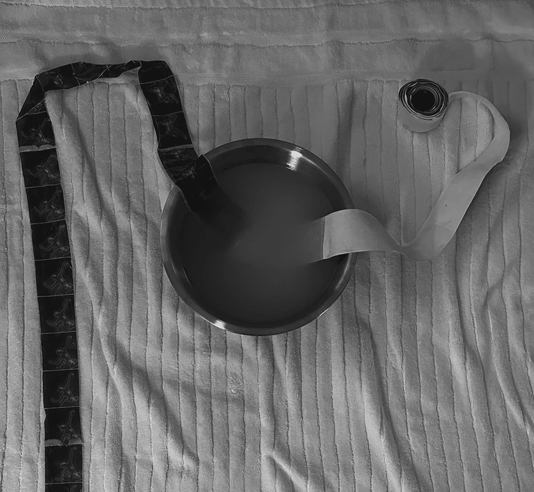 Sequence is printed frame-by-frame and transferred to gel medium. Paper is scrubbed off using water to reveal translucent film.