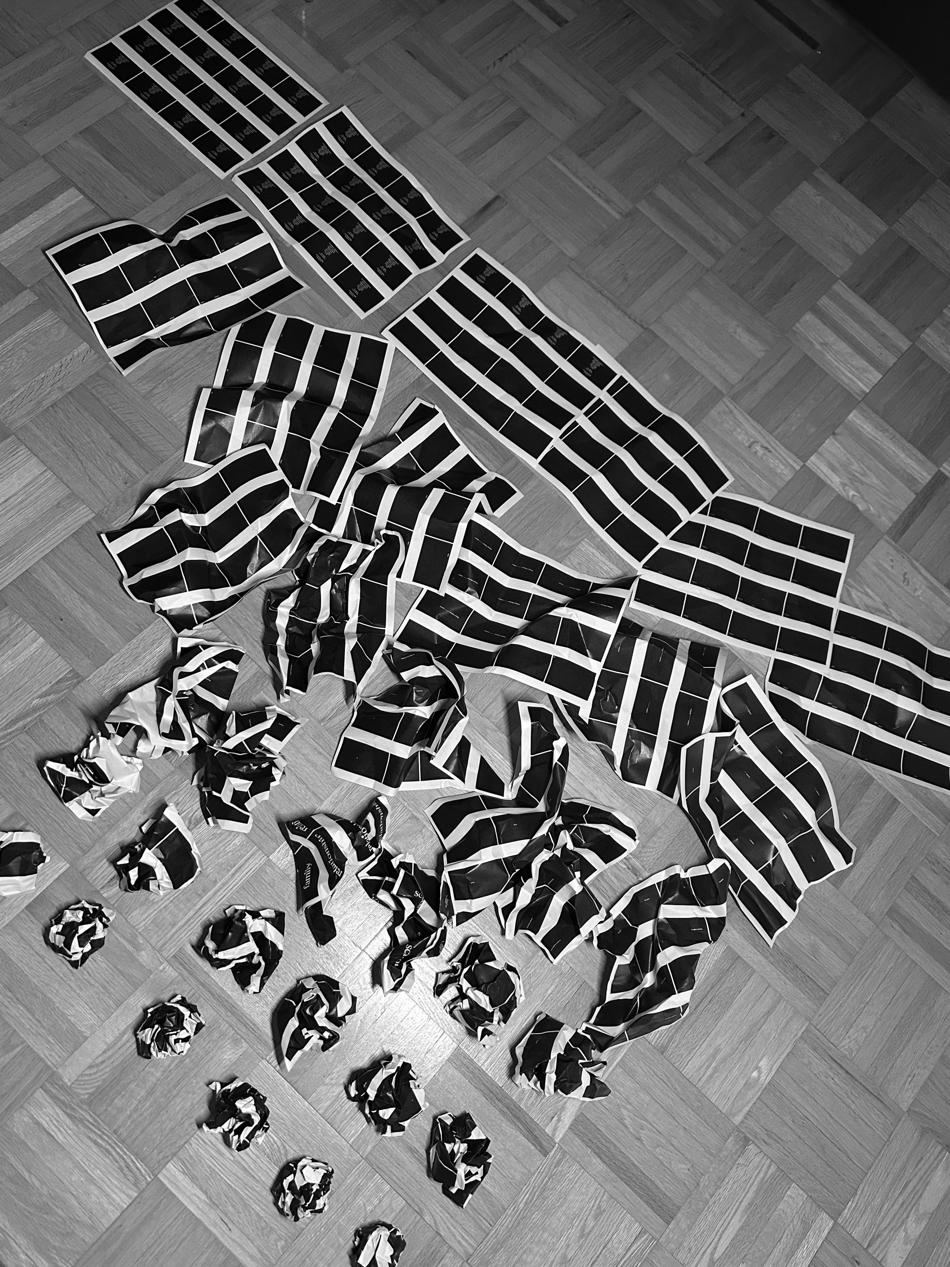 Type is printed frame by frame, allowing for a gradient of physical "noise" to be introduced that "quiets" over the course of the video.